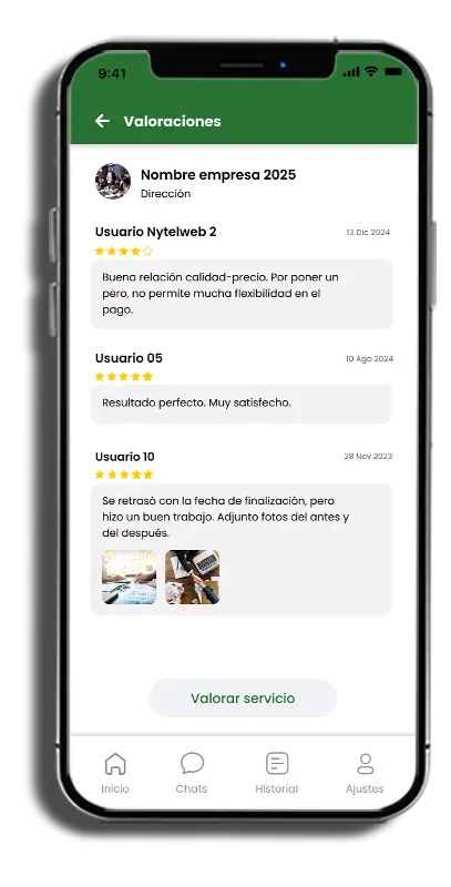 Antes de contratar, revisa las valoraciones y reseñas de otros usuarios que ya han trabajado con ese profesional. Así tendrás la tranquilidad de elegir con base en experiencias reales y verificadas.